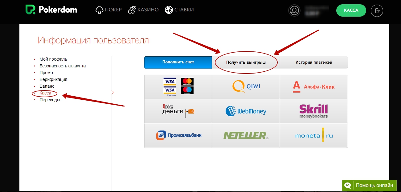 Вывод денег на Покердом